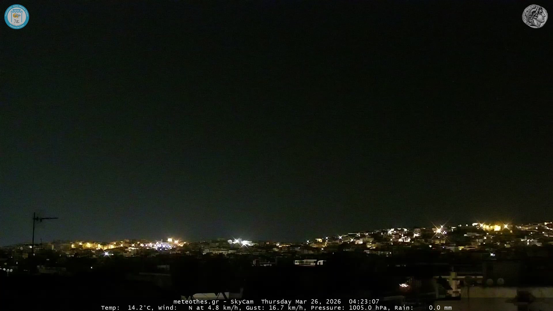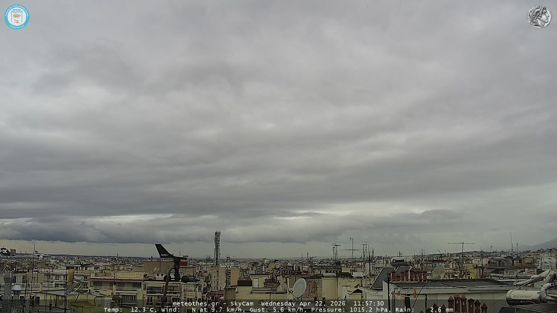 Ζωντανή Ροή Περιστρεφόμενης Κάμερας Ουρανού Ιστορικού Κέντρου Θεσσαλονίκης - Πατήστε |