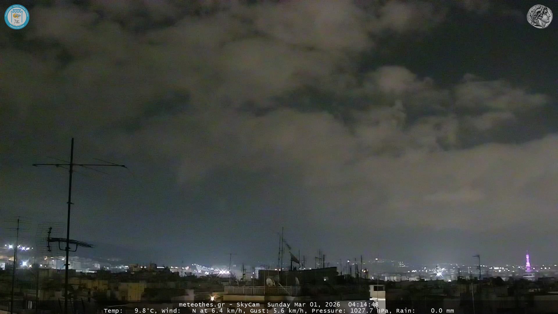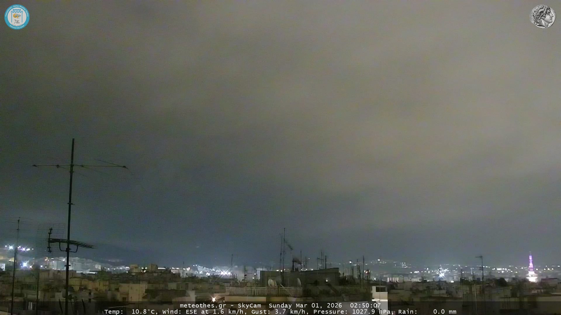 Ζωντανή Ροή Περιστρεφόμενης Κάμερας Ουρανού Ιστορικού Κέντρου Θεσσαλονίκης - Πατήστε |