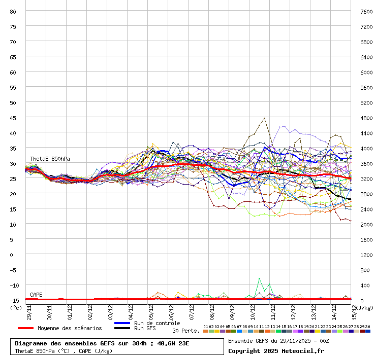 Pressure(Prs) (sea level), Theta-E(tE) at 850 hPa & CAPE(C)