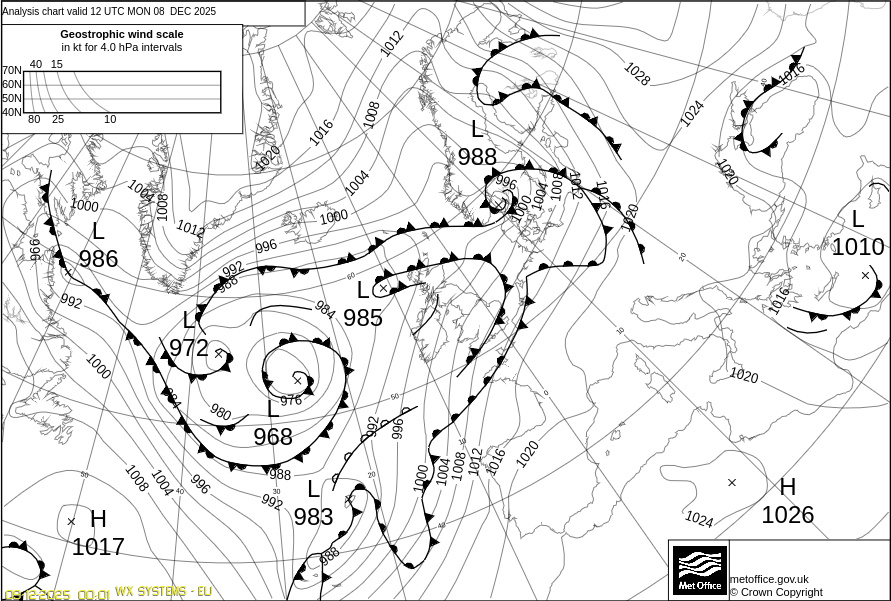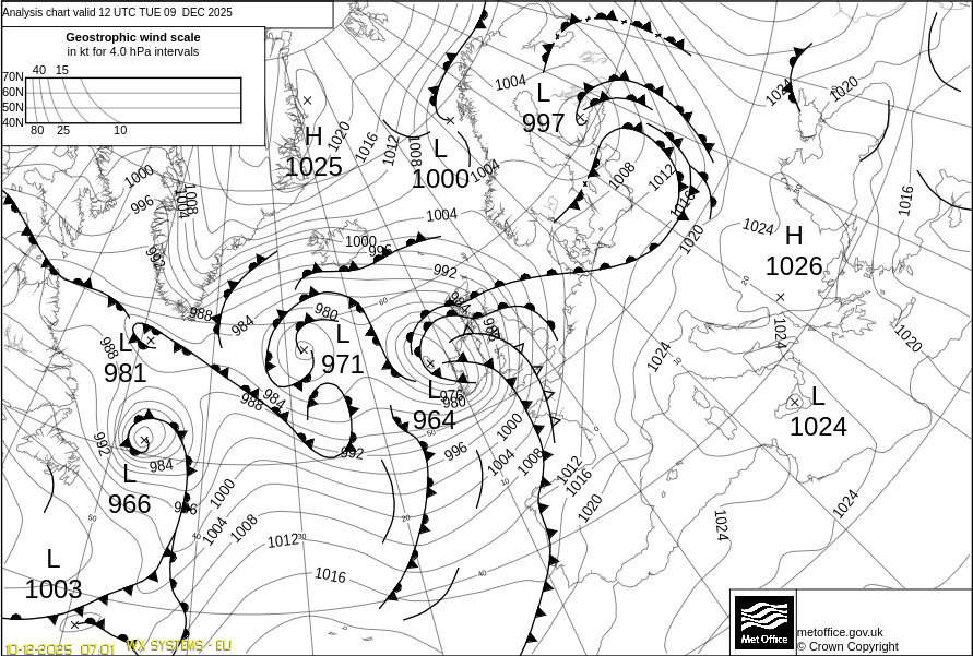 Η κυκλοφορία των αερίων μαζών σε Βαρομετρικό Υψηλό Οι Αντικυκλώνες με τη σειρά τους διακρίνονται σε Ψυχρούς, Θερμούς, Ψυχρούς και Θερμούς. Ψυχροί είναι οι αντικυκλώνες πού έχουν σε όλο το ύψος θερμοκρασία μικρότερη από τις γειτονικές περιοχές. Τέτοιοι αντικυκλώνες σχηματίζονται το χειμώνα πάνω απ' τις ψυχρές περιοχές των Ηπείρων. Θερμοί είναι οι Αντικυκλώνες πού στο εσωτερικό τους και καθ' όλο το ύψος τους η θερμοκρασία είναι μεγαλύτερη από ότι στις γειτονικές περιοχές. Αυτοί οι Αντικυκλώνες συνήθως σχηματίζονται πάνω από θάλασσες, καθώς και στα νοτιότερα πλάτη πάνω από ηπειρωτικές περιοχές (Αφρική) κατά το χειμώνα. Τέλος Θερμοί και Ψυχροί είναι οι Αντικυκλώνες πού κατά ένα μέρος είναι θερμοί και κατά ένα μέρος ψυχροί. Επίσης οι Αντικυκλώνες διακρίνονται σε μόνιμους , εποχικούς και κινητούς. Οι Μόνιμοι Αντικυκλώνες σχηματίζονται πάνω από τους ωκεανούς των υποτροπικών περιοχών. Τέτοιοι Αντικυκλώνες στο Β. ημισφαίριο είναι του Ατλαντικού (Αζορών) και του Ειρηνικού. Είναι θερμοί Αντικυκλώνες και επηρεάζουν τις παρακείμενες ηπείρους με καλό καιρό, αν και τον χειμώνα μετατοπίζονται προς τον ισημερινό και δεν επηρεάζουν τις εύκρατες περιοχές. Οι Εποχικοί Αντικυκλώνες σχηματίζονται πάνω από μεγάλες ηπειρωτικές εκτάσεις κυρίως κατά την ψυχρή περίοδο και είναι εξ αιτίας αυτού συνήθως ψυχροί. Τέτοιοι Αντικυκλώνες είναι της Σιβηρίας και του Καναδά. Τέλος οι Κινητοί Αντικυκλώνες είναι πολύ μικρότεροι σε έκταση και σχηματίζονται σε περιοχές μεγάλων γεωγραφικών πλατών. Μετακινούνται όμως γρήγορα προς τα μικρότερα γεωγραφικά πλάτη μεταφέροντας πολύ ψυχρές αέριες μάζες. Σ' αυτούς οφείλονται συνήθως οι ψυχρές εισβολές και οι χιονοπτώσεις των εύκρατων και υποτροπικών περιοχών. Στον χάρτη καιρού της εικόνας πού ακολουθεί έχει αποτυπωθεί ένα Βαρομετρικό Χαμηλό πάνω απ' την Ιταλία, και ένας Αντικυκλώνας πάνω από τη Λιβύη.