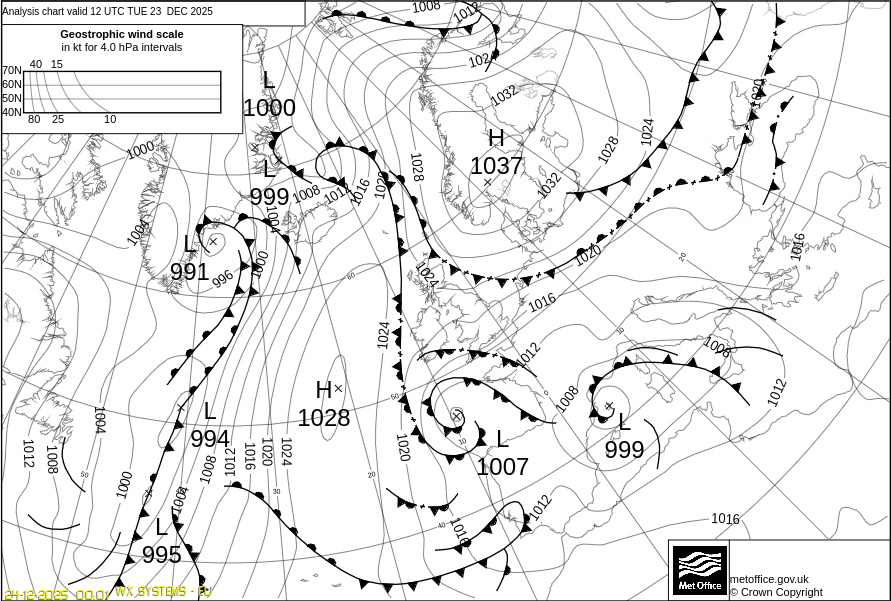 Αίθριος έως μερικώς νεφελώδης το βράδυ, μεταβαλλόμενος σε καθαρό μετά τα μεσάνυχτα. Ελάχιστη 7°. Aνεμος βόρειος-βορειοδυτικός περίπου 10 km/h το βράδυ, μεταβαλλόμενος σε 19 km/h, με ριπές έως 34 km/h, μετά τα μεσάνυχτα. |