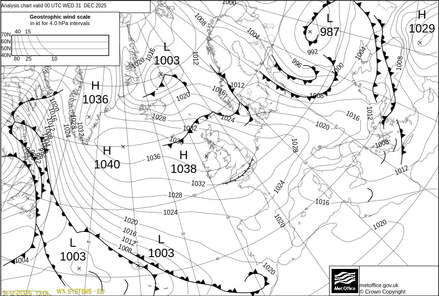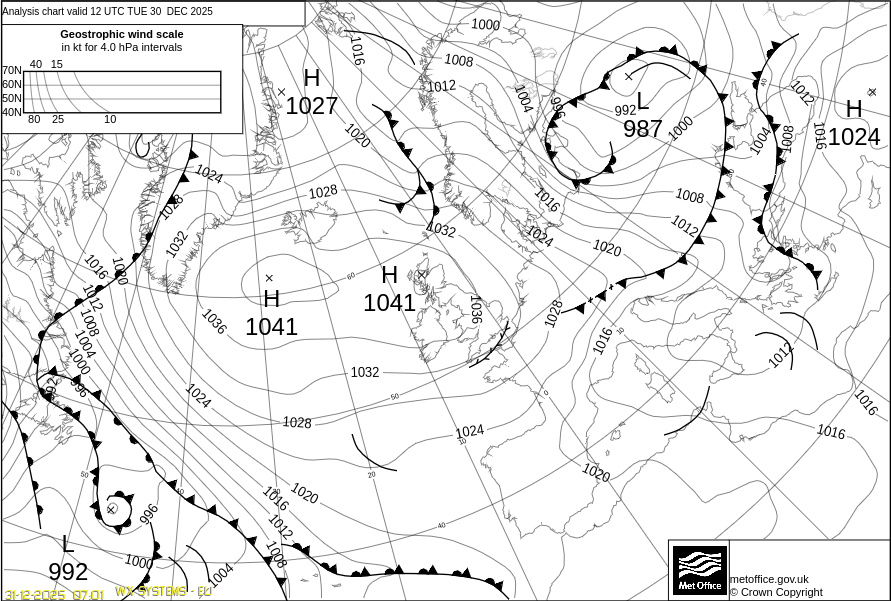Αίθριος. Ελάχιστη 2°. Αίσθηση ψύχρας μεταξύ -2 έως 1. Aνεμος βόρειος περίπου 25 km/h, με ριπές έως 40 km/h. |